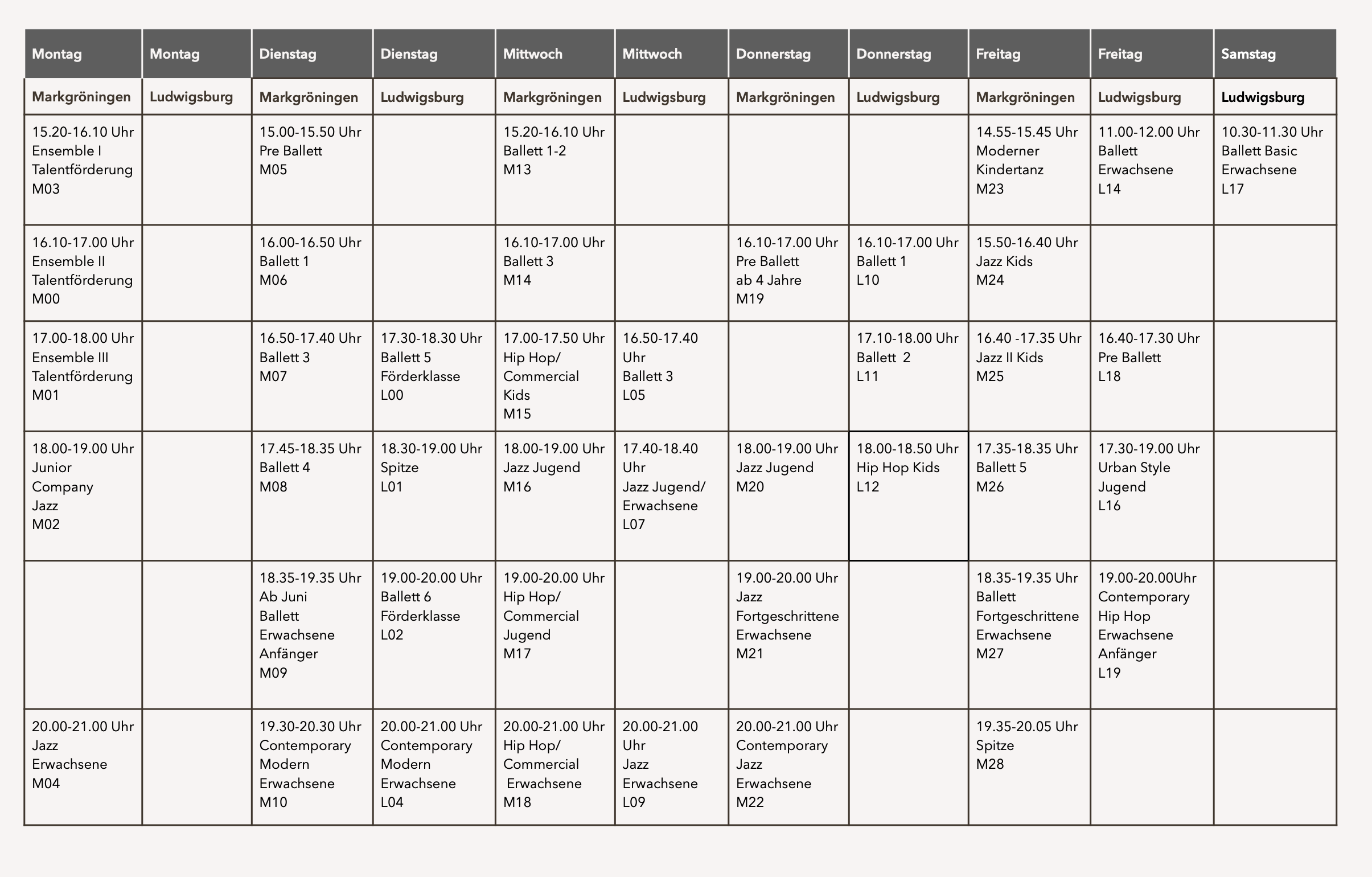 Wir bieten seit 30 Jahren zahlreiche Kurse für alle Altersgruppen und Niveaus an. Unser Team besteht aus qualifizierten Lehrern, die ihr Wissen und ihre Leidenschaft für das Tanzen an unsere Schüler weitergeben. Eine freundliche und unterstützende Umgebung, in der jeder Schüler sein volles Potenzial entfalten kann, ist uns besonders wichtig. Mehr als 50 Kurse für Kinder, Jugendliche und Erwachsene in den Bereichen klassisches Ballett, Jazz Dance, Modern Dance, Contemporary, Hip Hop und Breakdance sowie Kurse für unsere Kleinsten im kreativen Kindertanz, im modernen Kindertanz und Pre Ballett findet ihr bei uns.